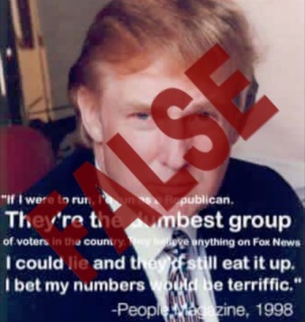 The fake trump quote simply did not exist. But a search of people 's back issues did not turn up an interview with trump from that year. Donald trump s 1998 quote about the republican party from people magazine is a fake chances are you have seen the picture of a young donald trump coupled with a quote from an interview he did. The other 98% in the quote, trump calls voters the dumbest group of voters in the country. An old quote falsely attributed to donald trump has recently resurfaced online.